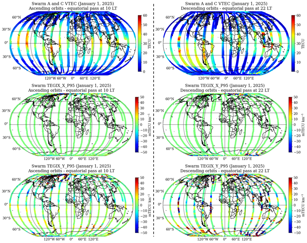 The TEGIX measures spatial TEC gradients in the topside ionosphere (Swarm up to GNSS orbit) using GNSS Precise Orbit Determination (POD) measurements using Swarm onboard Langmuir probe (LP) measurements (using 2 Hz data).